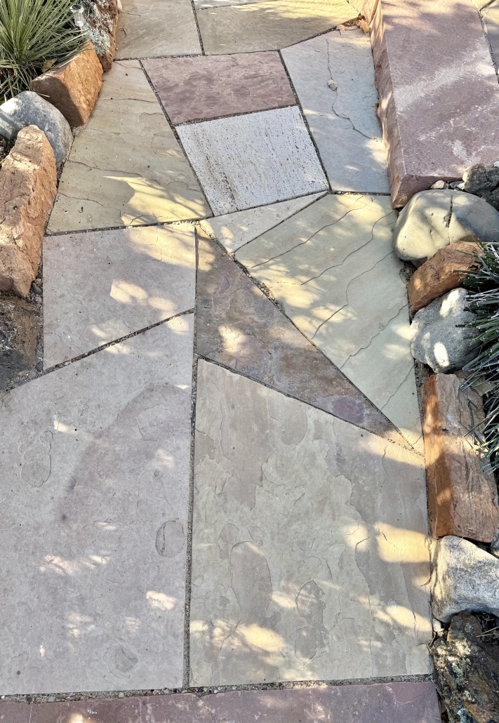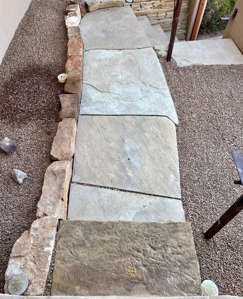 Stone walkways can provide a safe, attractive, and durable path in a range of landscape circumstances. Stone walkways work best when they are level in all directions. Stone walkways on a slope should incorporate steps unless it is specifically designated for wheelchair or other ADA criteria.